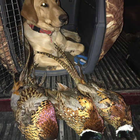 Barley is a 6 year old female American Lab. She has successfully whelped three litters (2019, 2020, 2021). Barley pointed her first pheasant at 6 months old. Her instinct to hunt close, great nose and never ending energy combined with her extreme athleticism make her a joy to hunt with. At home Barley is a friendly dog, eager to please and loves to go running or play fetch.